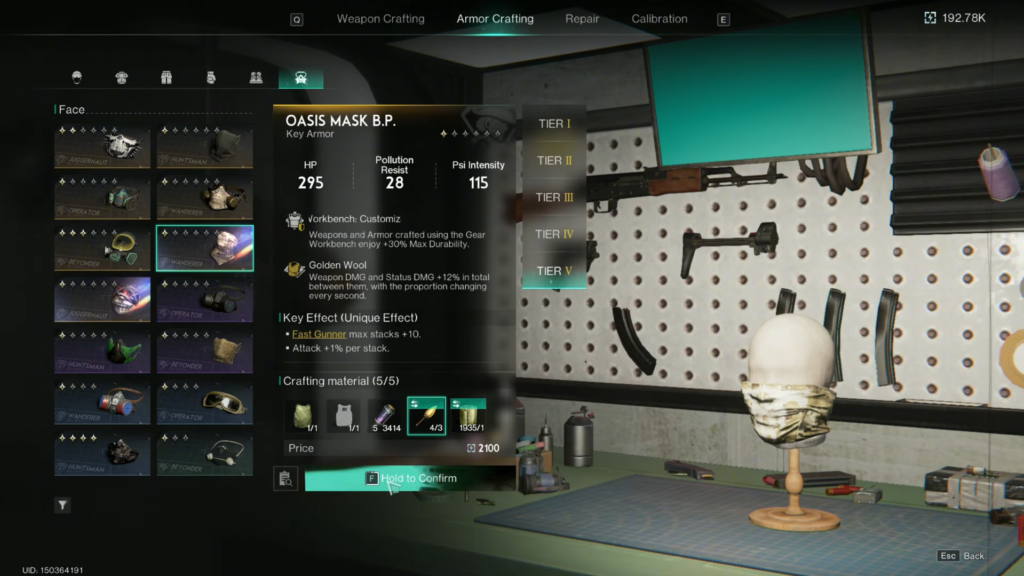| Mask | Oasis Mask B.P. | Targeted Strike <Violent> | Crit Rate +10%, Crit DMG +25% |